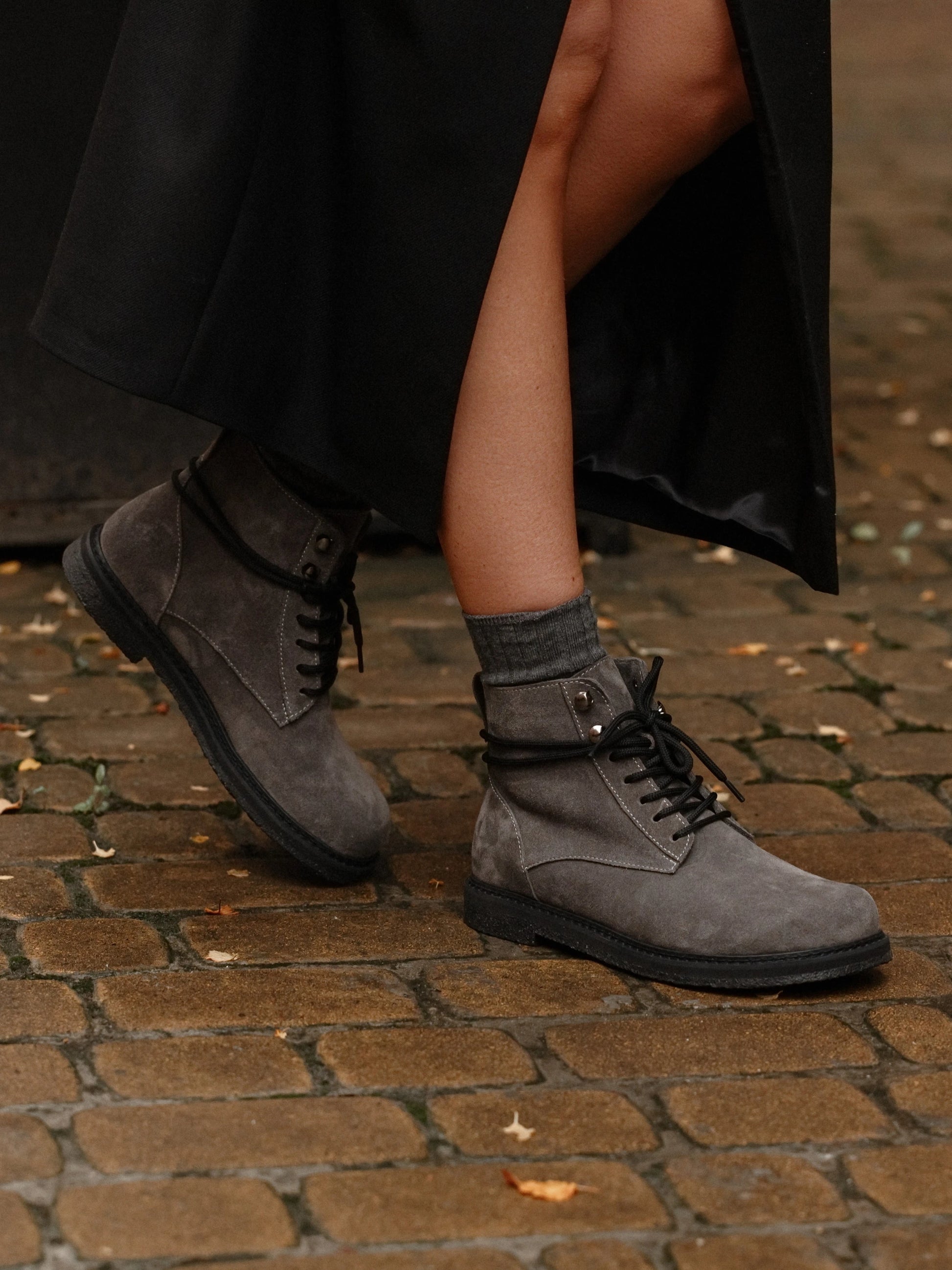 Черевики анатомічної форми сірі замшеві на байці • GRACE