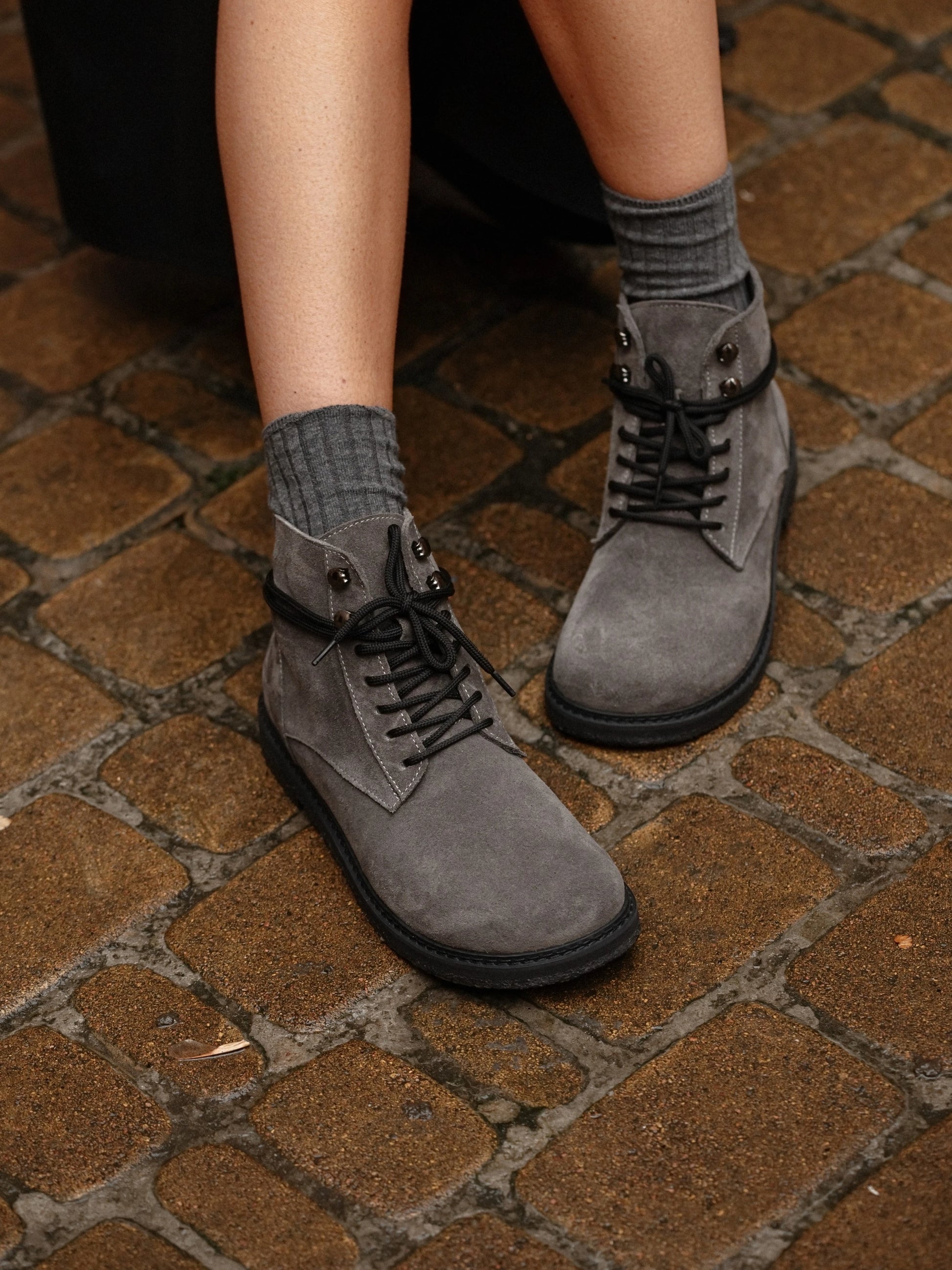 GRACE черевики анатомічної форми сірі замшеві на байці